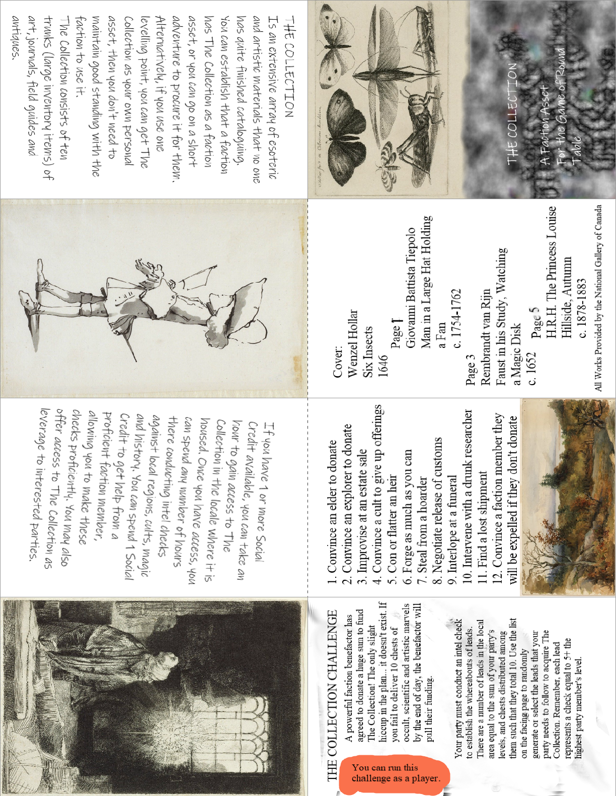 Create your own collection in Round Table. Sure public domain is great and all, but what if you secreted your collection away to be used by your faction exclusively instead? Includes The Collection faction asset so you or your faction can hoard knowledge like tempermental dragons, and a helpful guide on creating the collection by way of adventure, fraud and bribery.